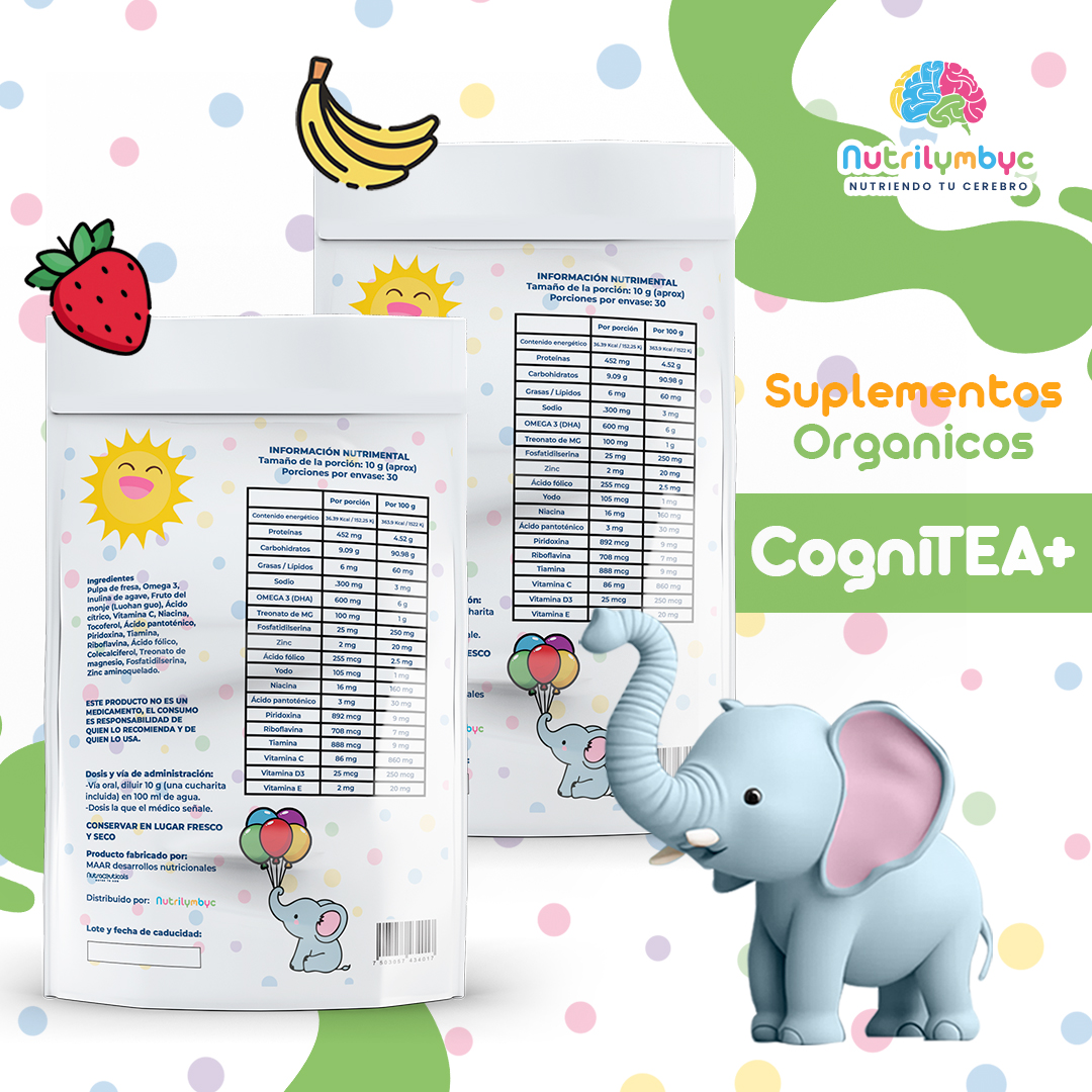 CogniTEA Plus es un suplemento nutricional en polvo, 100% vegano, creado especialmente para apoyar el desarrollo cognitivo, emocional y conductual de los niños. Su fórmula está basada en neurociencia nutricional y diseñada para fortalecer la atención, el lenguaje, el aprendizaje y la regulación emocional, de forma natural, segura y deliciosa.
